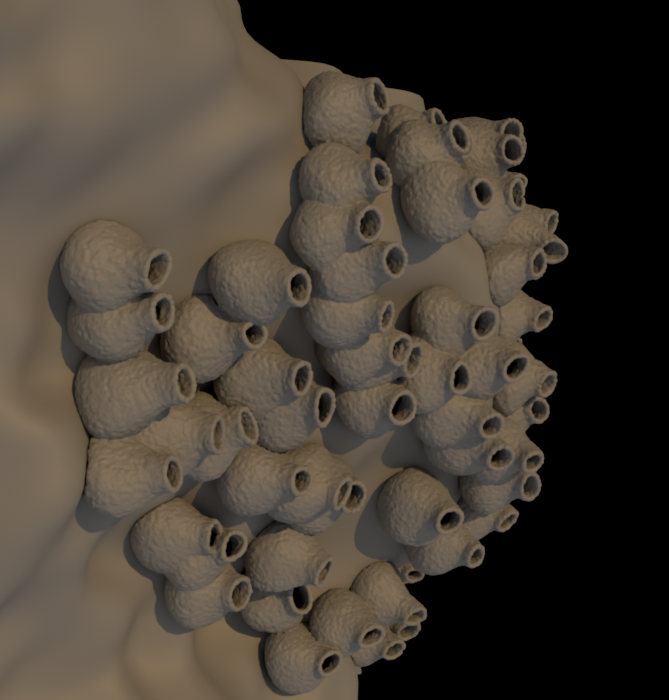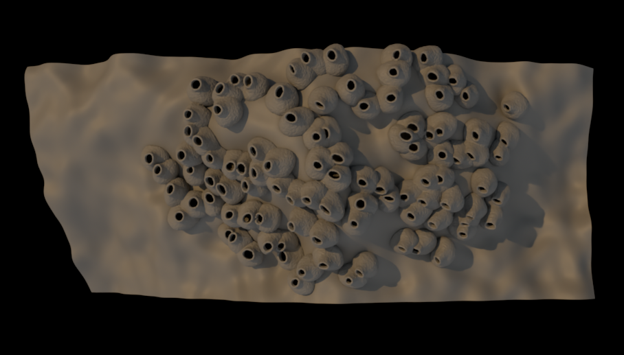 Who knows what will happen. The colony adapts to an underlying surface and simulates the way in which the swallows try to build according to the rock formations or weather conditions.